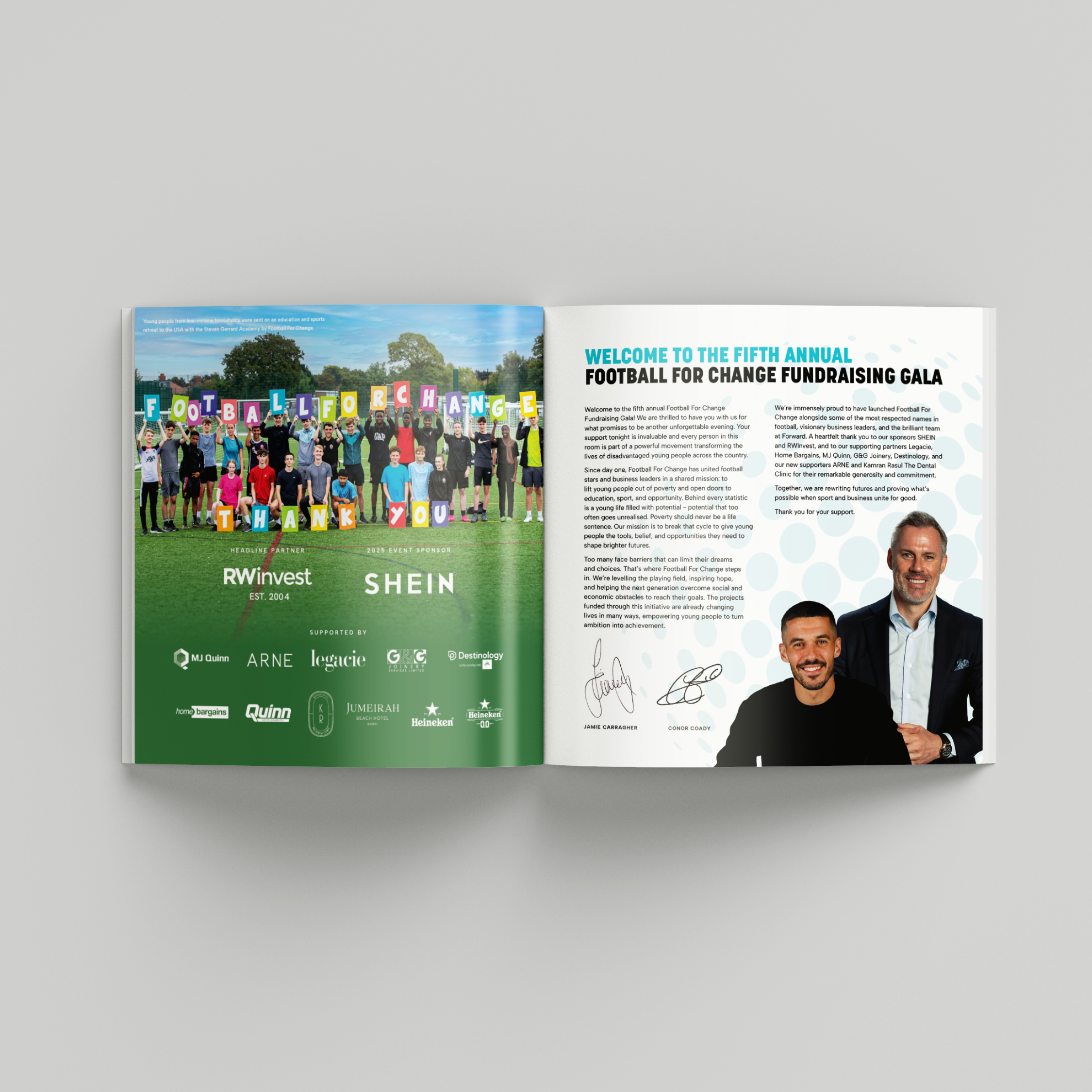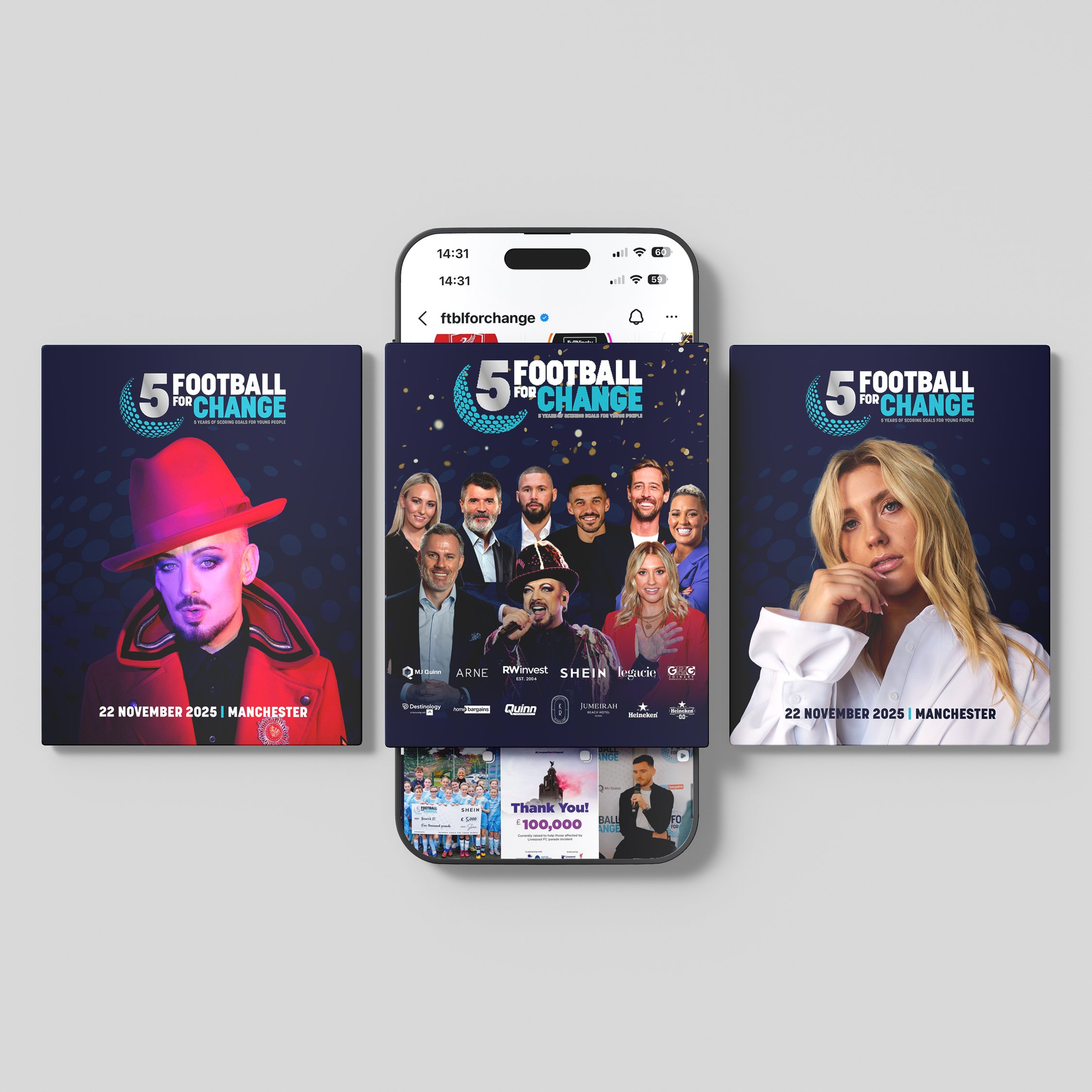 Since their launch in 2022, I have supported Football For Change with a full spectrum of creative services, from initial branding and design to ongoing social media content, presentations, and complete event print and digital media.